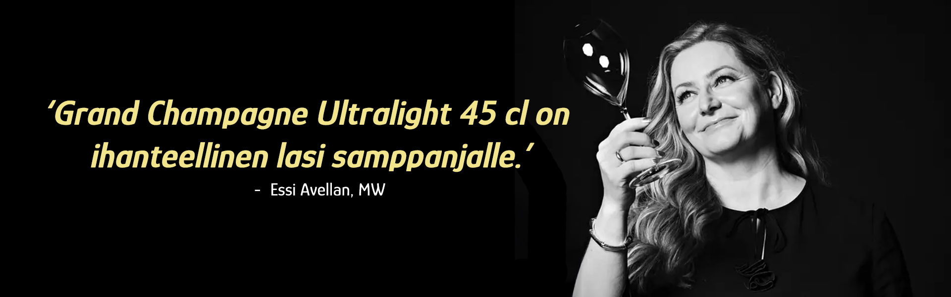 Maailmankuulu samppanja-asiantuntija Essi Avellan, Master of Wine, pitää Lehmann Reimsin Grand Champagne Ultralight 45 cl -lasia ´ihanteellisena samppanjalasina, joka tuo täydellisesti esiin samppanjoiden kaikki parhaat ominaisuudet'.